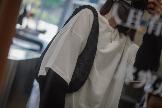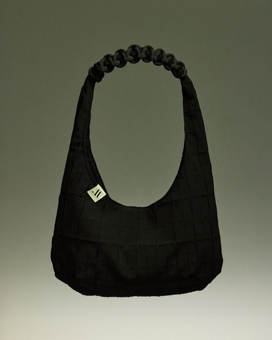 (預購)牛角型編織外出包|黑色霧面提花(S)