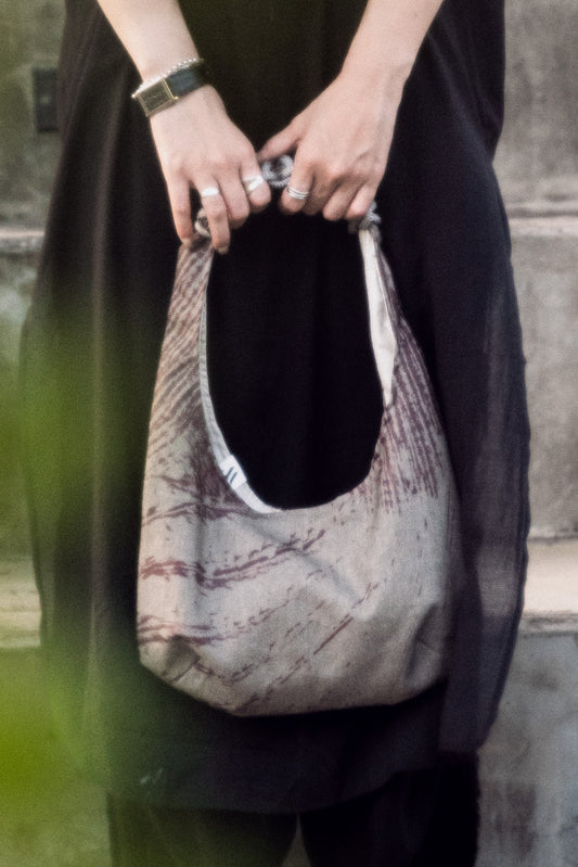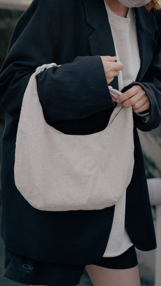 牛角型編織外出包・栗褐色|草灰色 (S)